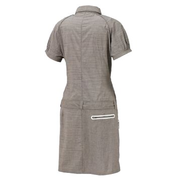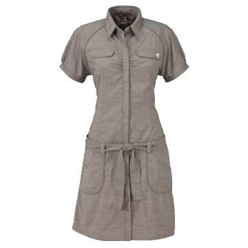 Stylisches und funktionelles Reise- und Freizeitkleid mit vielen Details: geraffter V-Ausschnitt, aufgesetzte Brusttaschenattrappen, RV-Hintertasche, Gürtel aus demselben Material. Antibakteriell und feuchtigkeitsabsorbierend.