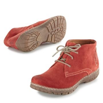 Ein stilbewusster Begleiter! Aus weichem Veloursleder, hübsche Ziernähte setzen Akzente, optimale Passform durch Schnürung, kuscheliges Textilfutter, profilierte Laufsohle